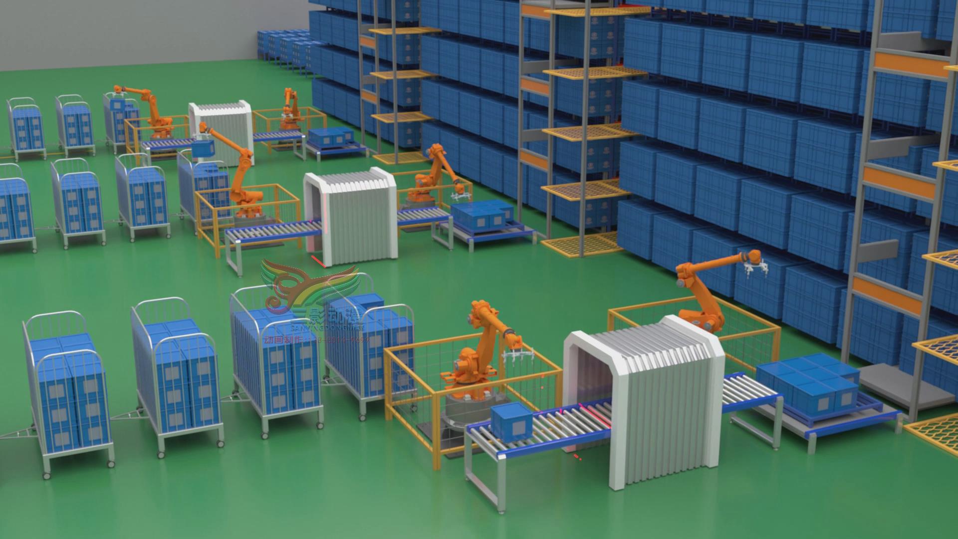 自动化配料包装码垛仓储物流生产线3D三维动画制作公司--三影动漫